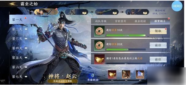 2、赵云的武器和皮肤都是可以在霸业之始活动里面获取的,只不过霸业之始活动分为了4期,所以需要时间。