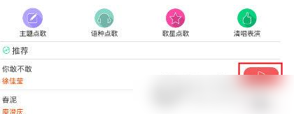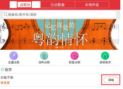 2、在点歌界面中,在要演唱的歌曲右侧点击“演唱”;