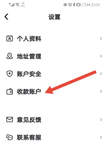 点击收款账户选项。